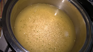 Lavatela molto bene in un colino prima di cuocerla, poi mettetela in una pentola aggiungendo la quantità doppia di acqua (calcolate 80 g per persona). Io ho utilizzato del brodo vegetale per renderla più gustosa. Fate cuocere per 10 minuti dal bollore e lasciatela nella pentola finchè avrà assorbito tutto il liquido.