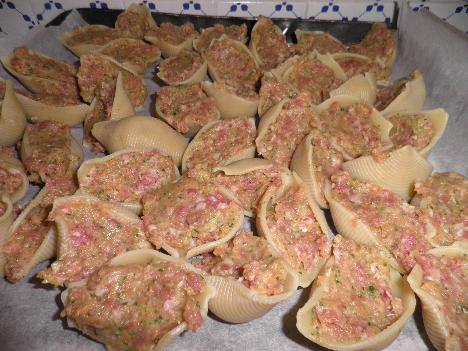 Riempite i conchiglioni con la farcia e disponeteli in una teglia imburrata.