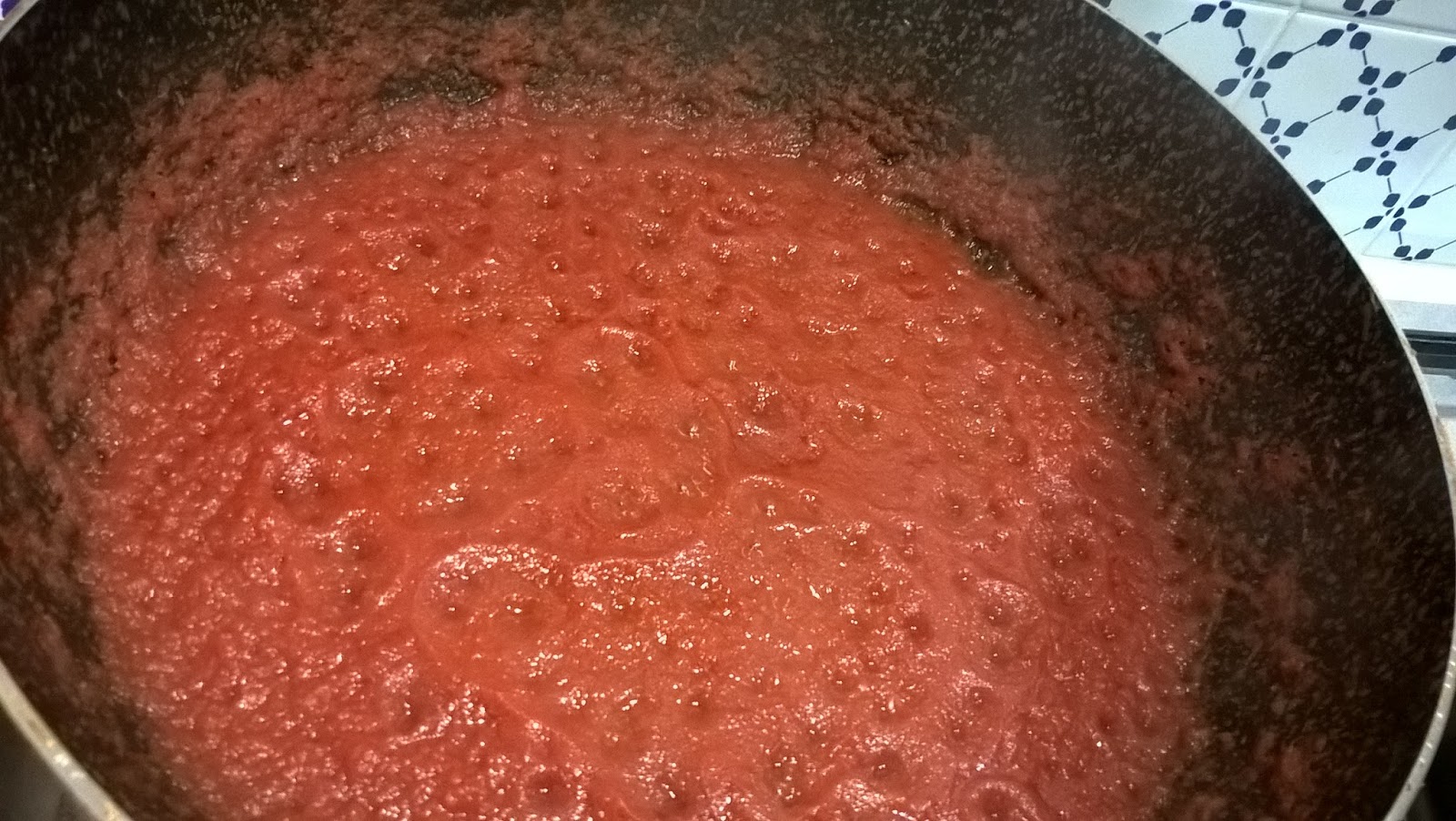 Fate addensare in padella della salsa di pomodoro.