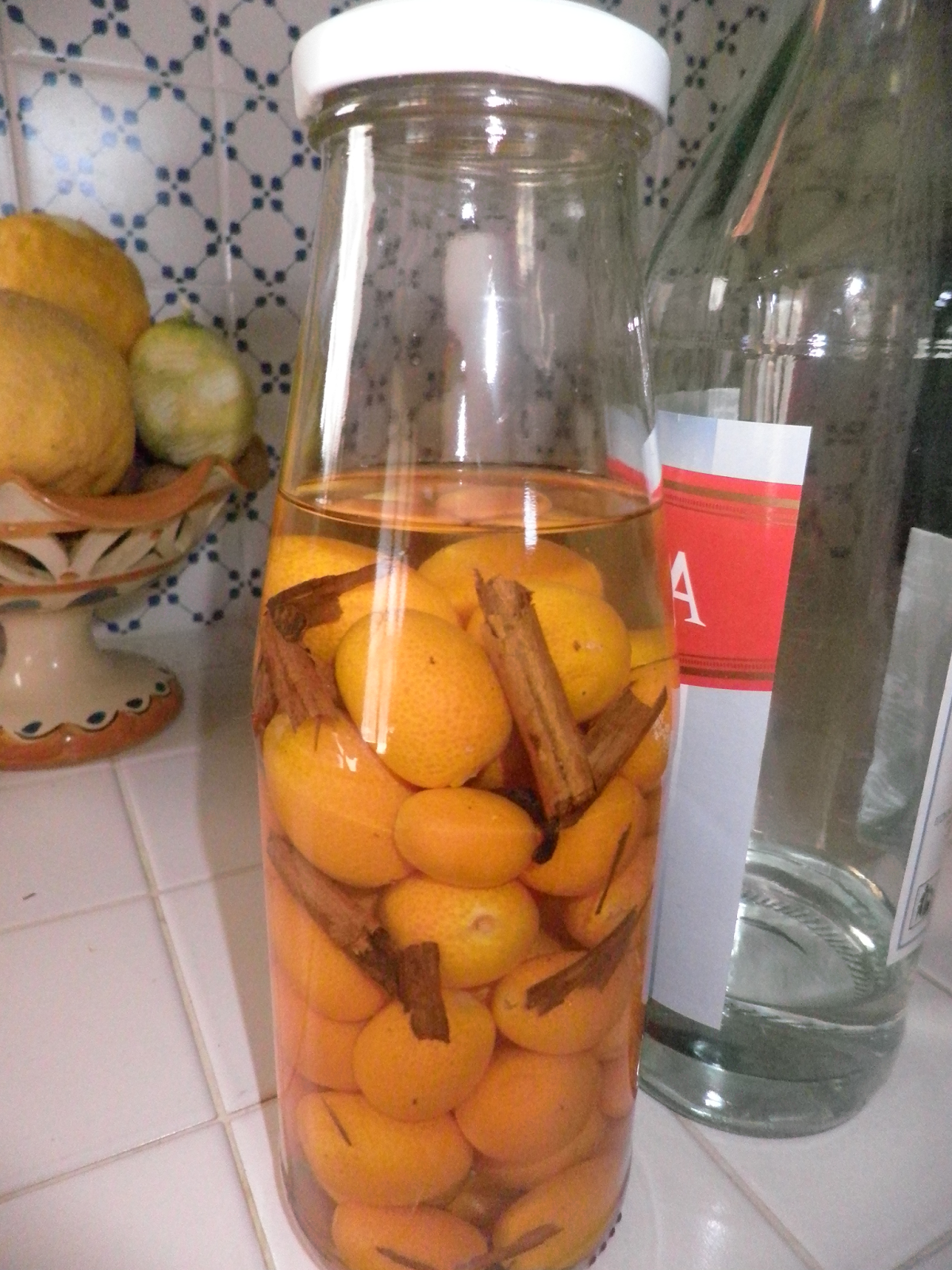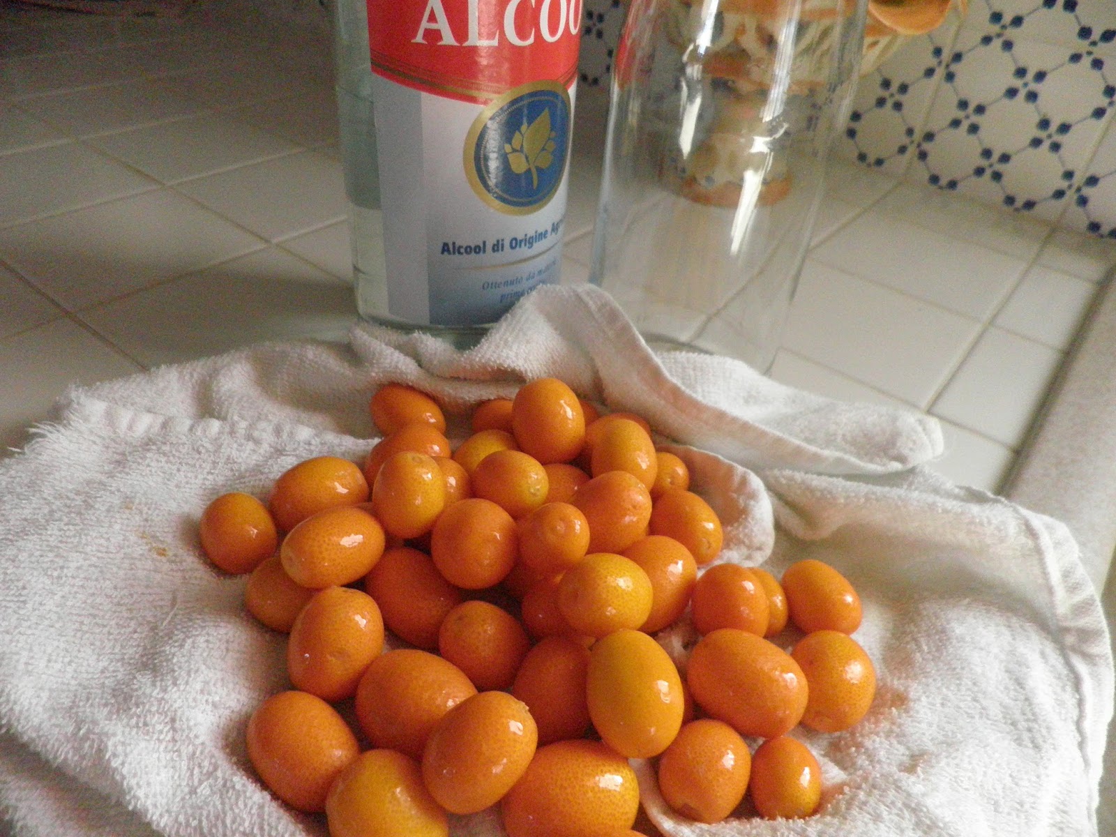Ho raccolto gli ultimi kumquat, li ho lavati con acqua fredda ed asciugati. Non ho pesato la quantità, vi dico che ho riempito quasi un barattolo da 3/4 di litro.
