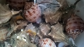 Come vi ho raccontato altre volte, vivo in un paesino in riva al mare e capita, andando sul molo ad aspettare le barche che rientrano dalla pesca, di trovarsi di fronte a dei regali non molto ricercati dalla maggior parte delle persone: è il caso dei murici o bocconi che di solito i pescatori mettono di lato per le loro personali scorpacciate (conoscono molto bene la bontà di queste grosse conchiglie).