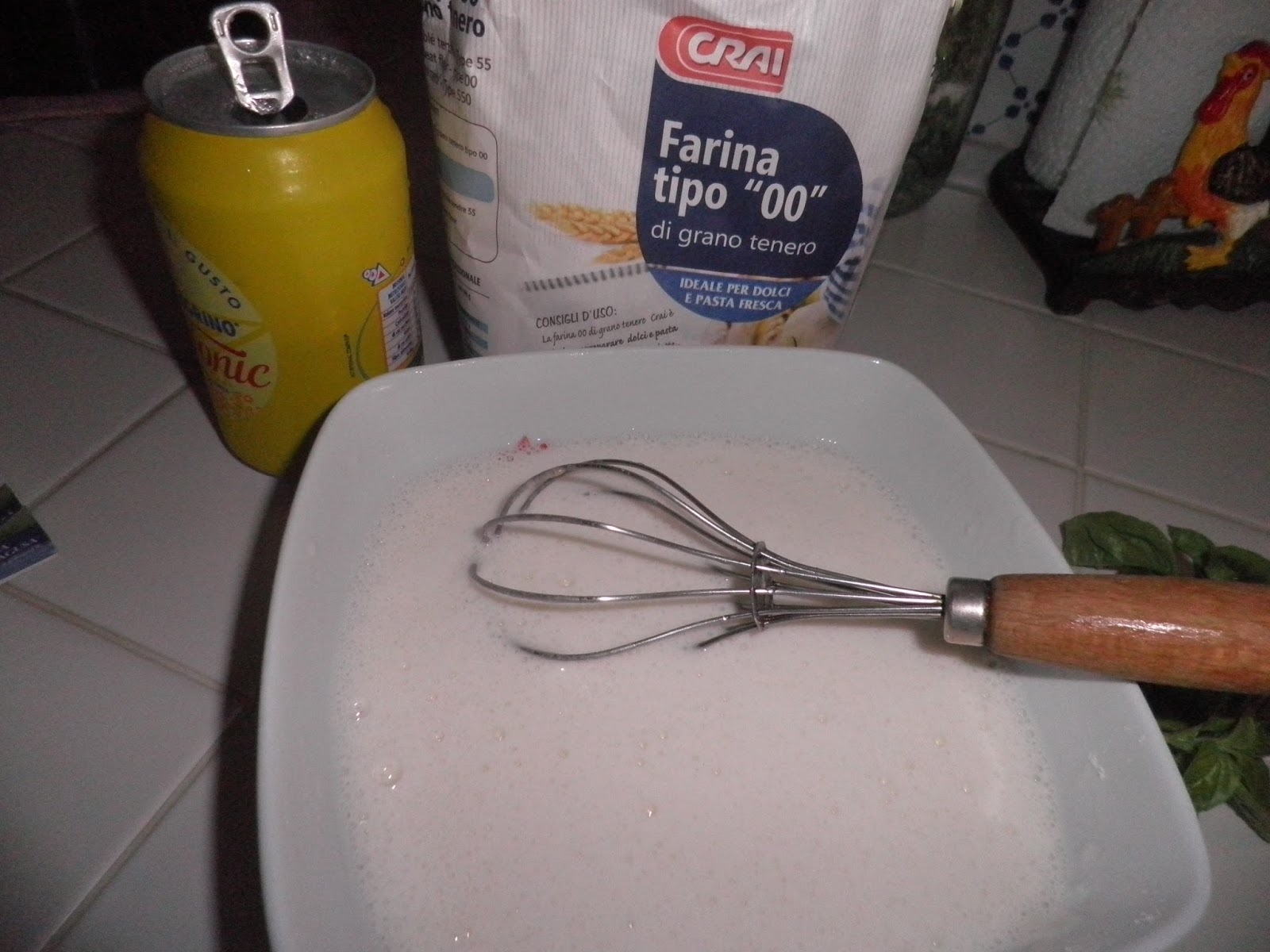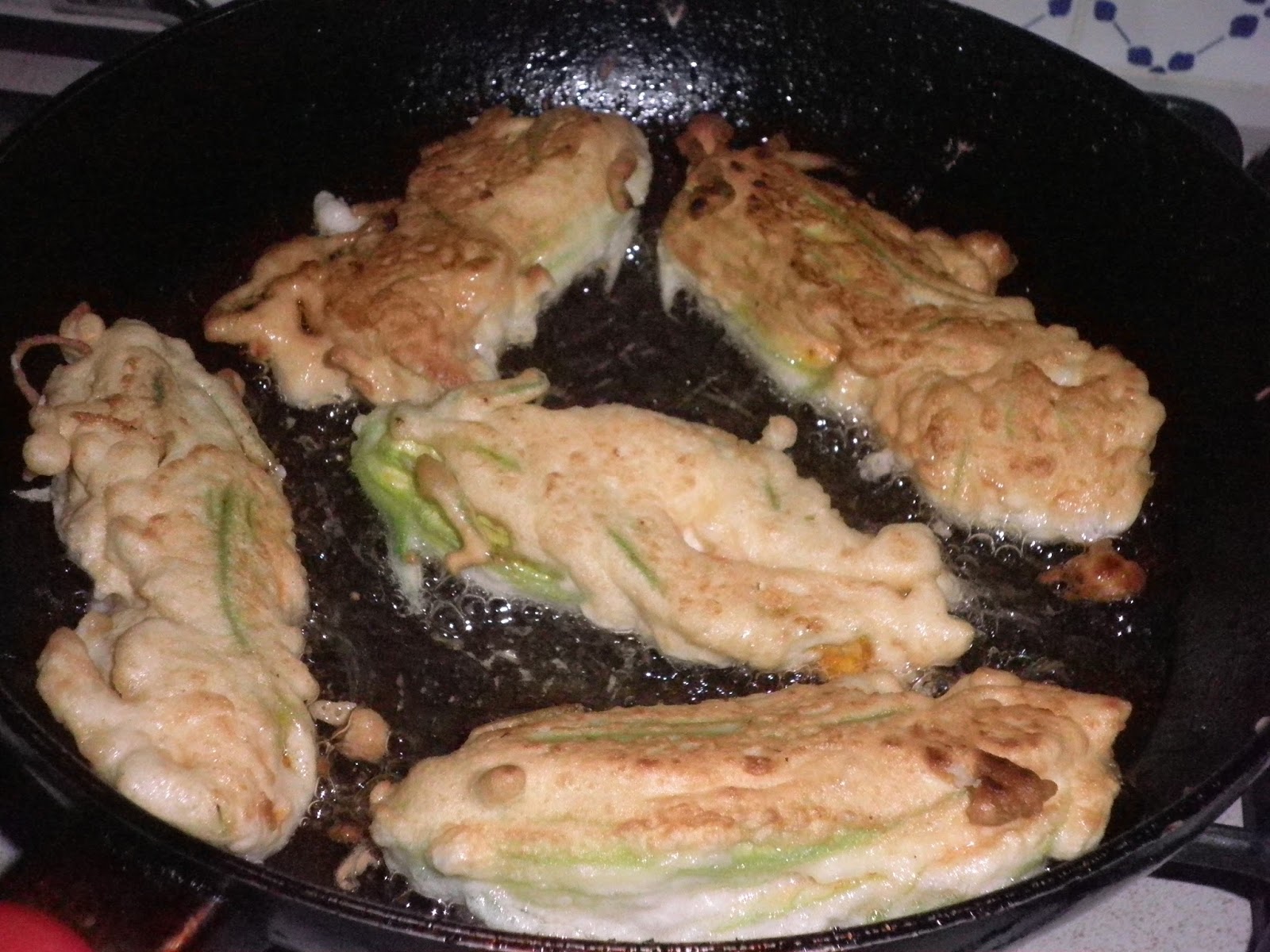 Preparo una pastella semiliquida con farina 00, sale e acqua tonica. Passo i miei fiori nella pastella e li tuffo in abbondante olio di semi di arachide bello caldo tenendoli dal gambo.