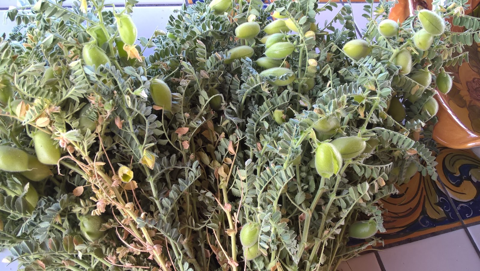 Non mi era mai capitato di cucinare i ceci verdi; ho dei ricordi di bambina in cui, quando qualcuno ci regalava un bel mazzo di ceci, era un enorme divertimento quello di mangiarli crudi, facendo scoppiare il loro piccolo baccello. Presa dai ricordi nostalgici e dalla curiosità, mi sono fermata a fotografare un campo di ceci, nella splendida campagna modicana. Il gentilissimo proprietario me ne ha regalato un bel mazzetto e io ho subito sperimentato questa semplice, ma gustosa, ricetta.