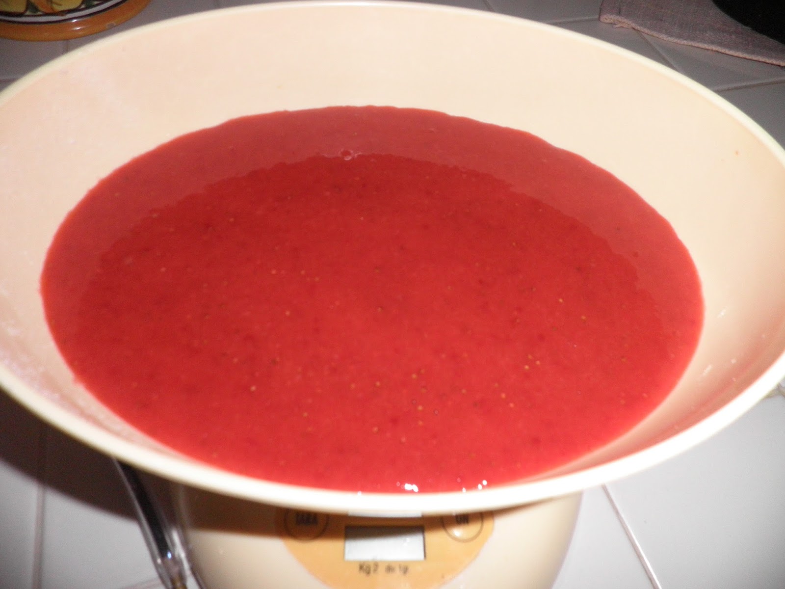 Frullate le fragole e unite il succo del limone, che manterrà il loro colore molto vivo.