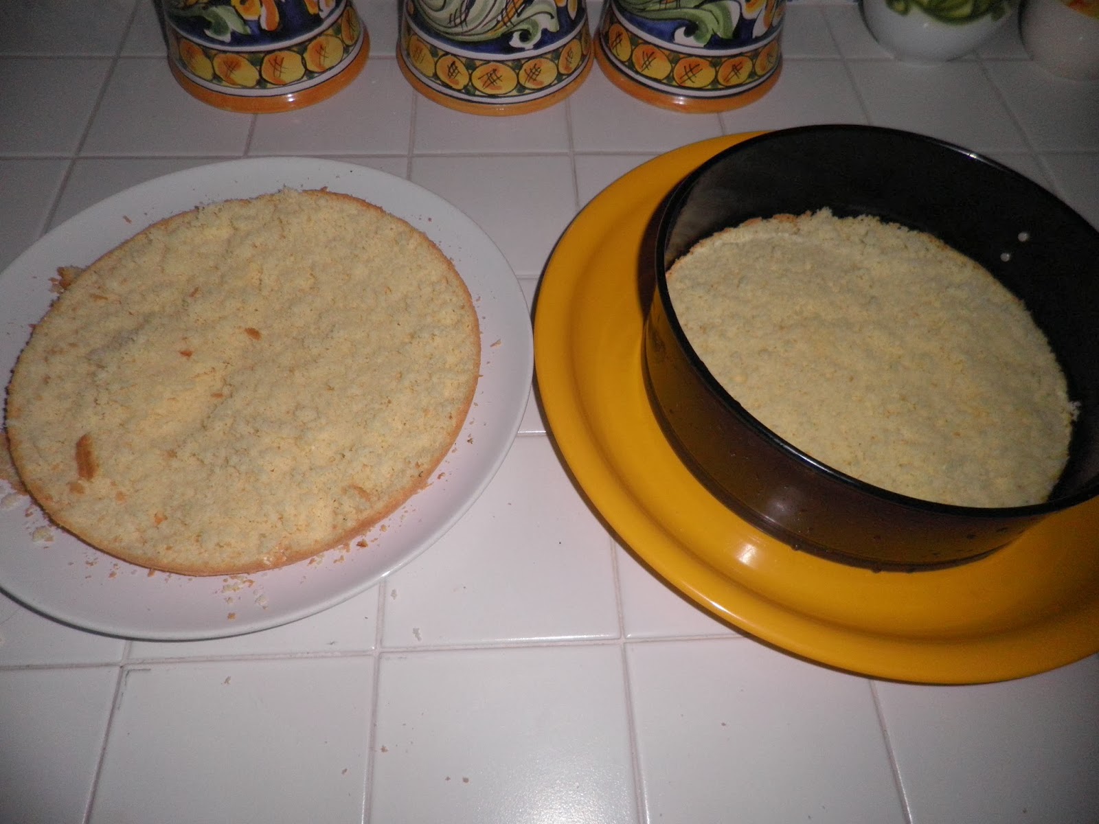 Dividete il pan di Spagna in due parti: bagnerete entrambe le parti con uno sciroppo di acqua , zucchero e due cucchiai di liquore al mandarino.