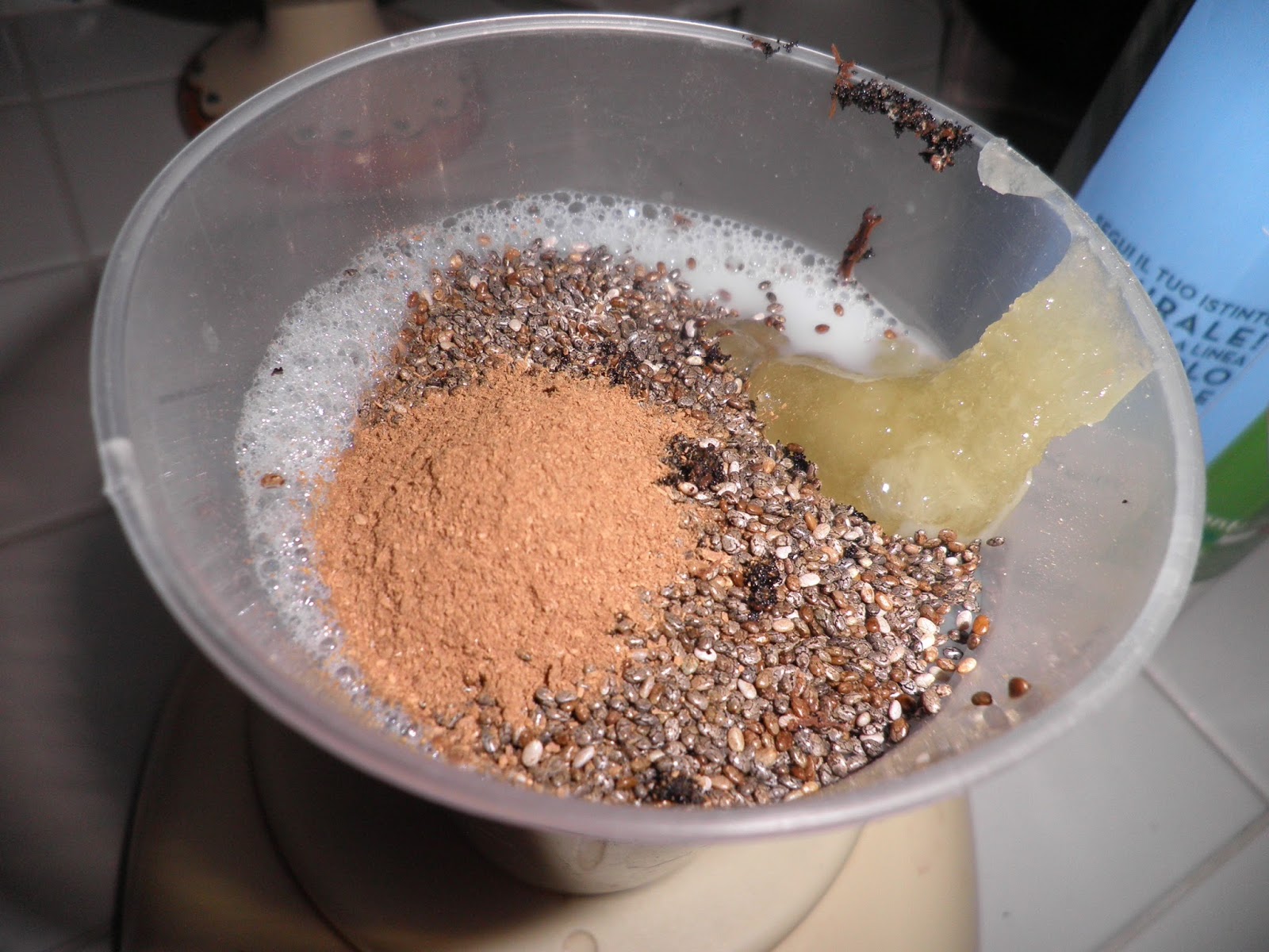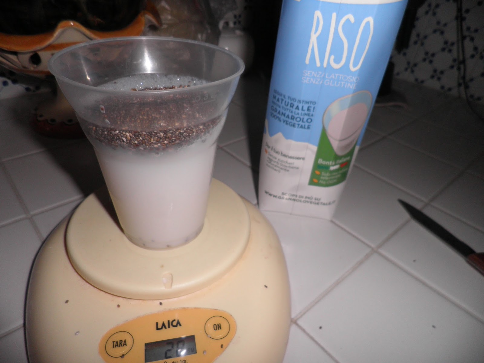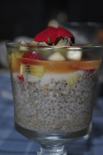 Per questo primo esperimento ho utilizzato il latte di riso ma mi riprometto di provare con il latte di mandorla la prossima volta, in modo da sicilianizzare il dolce. Gli ingredienti sono pochissimi: 30 g di semi di chia, 200 ml di latte di riso, 1 cucchiaino di miele d'arancio, cannella, semi di vaniglia, frutta a piacere.