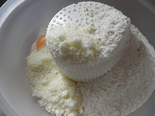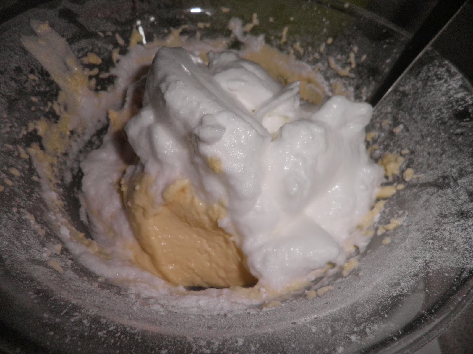 Aggiungete ai tuorli 200 g di farina di riso e un cucchiaino di lievito per dolci.