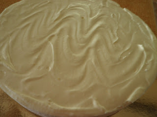 Versiamo la crema sulla base di biscotti e rimettiamo in frigo per un paio d'ore. Sformiamo quindi la torta e passiamo alla decorazione.