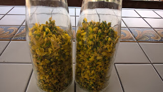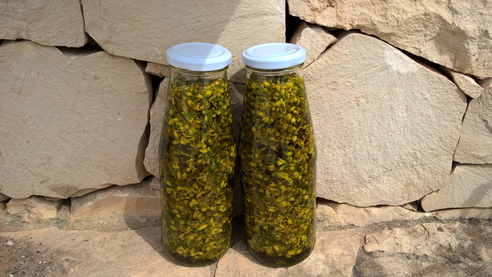 Tra due giorni è San Giovanni, un santo legato , nella nostra cultura, a tante tradizioni, a volte superstizioni e ad un 'erba chiamata appunto l'erba di San Giovanni o iperico. L'iperico è una pianta spontanea dai caratteristici fiori gialli che cresce nelle nostre cave; quest'anno la sua fioritura è stata anticipata a causa delle temperatura e la raccolta è avvenuta nella prima decade di maggio. Si racconta che tale raccolta dovesse avvenire la notte di San Giovanni per trarre buoni auspici e i massimi benefici. Non starò ad elencarvi i benefici e le proprietà di questa pianta perchè non voglio spacciarmi per una scienziata; vi dirò soltanto che in ogni famiglia custodiamo gelosamente una bottiglietta di olio d'iperico per i problemi più disparati: ferite che non si rimarginano, ematomi, scottature, eritemi solari, insomma ogni problema può essere risolto con un po' di "uogghiu pricò".