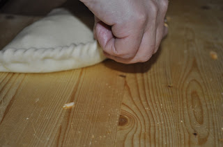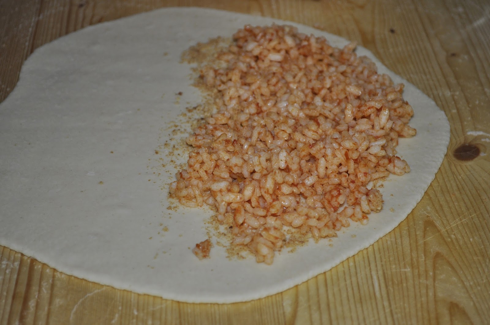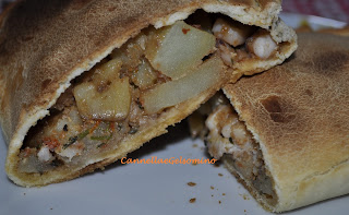 Preparate la pasta dell'involucro con 500 g di semola rimacinata di grano duro, due cucchiai di olio, 5 g di lievito e acqua tiepida quanto basta per ottenere un bel panetto elastico e sodo. Dividetelo in 4 poezioni e stendete con il mattarello fino ad ottenere dei cerchi dallo spessore di 3/4 millimetri circa.