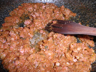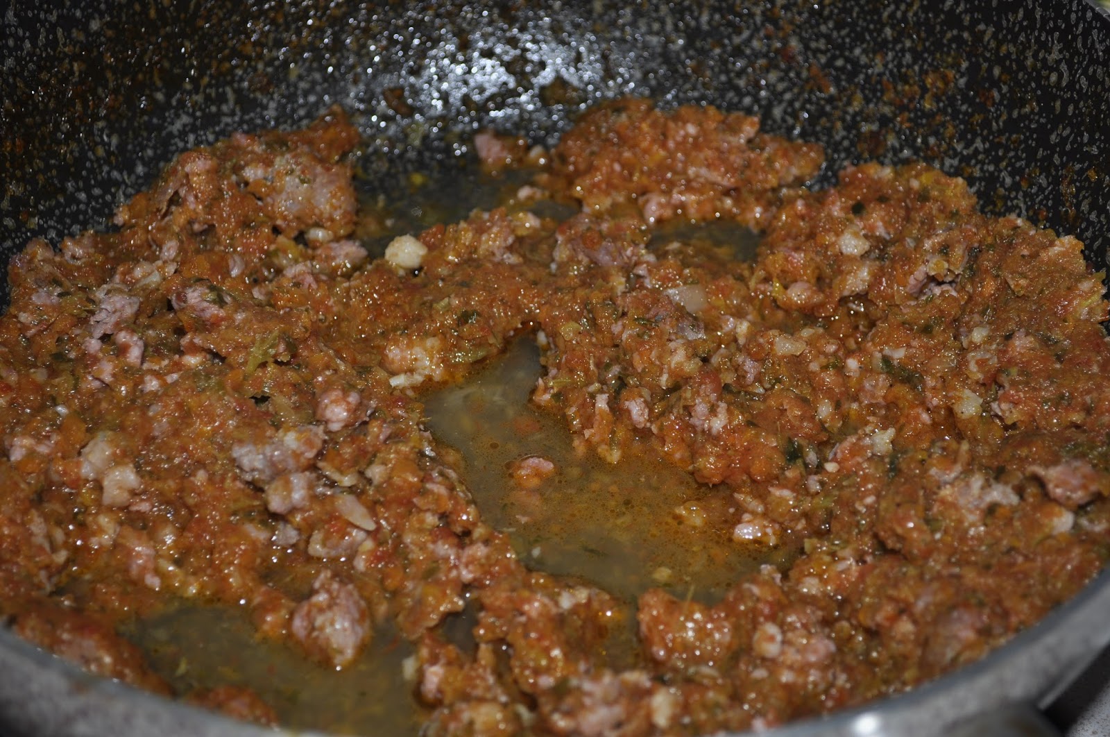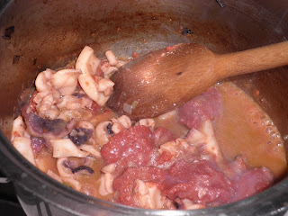 Aggiungete quindi un cucchiaio di concentrato di pomodoro (io utilizzo il nostro fantastico "strattu") e mezzo litro di passata di pomodoro. Fate cuocere per un'oretta circa.