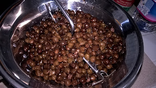 Questo è il mio bottino di oggi: bisognerà aspettare che spurghino un po'! Io li ho lasciati mezza giornata in acqua di mare (in mancanza di questa acqua e sale va benissimo).