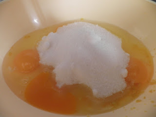 Per la base della torta: montate due tuorli con 150 g di zucchero e gli albumi a neve.