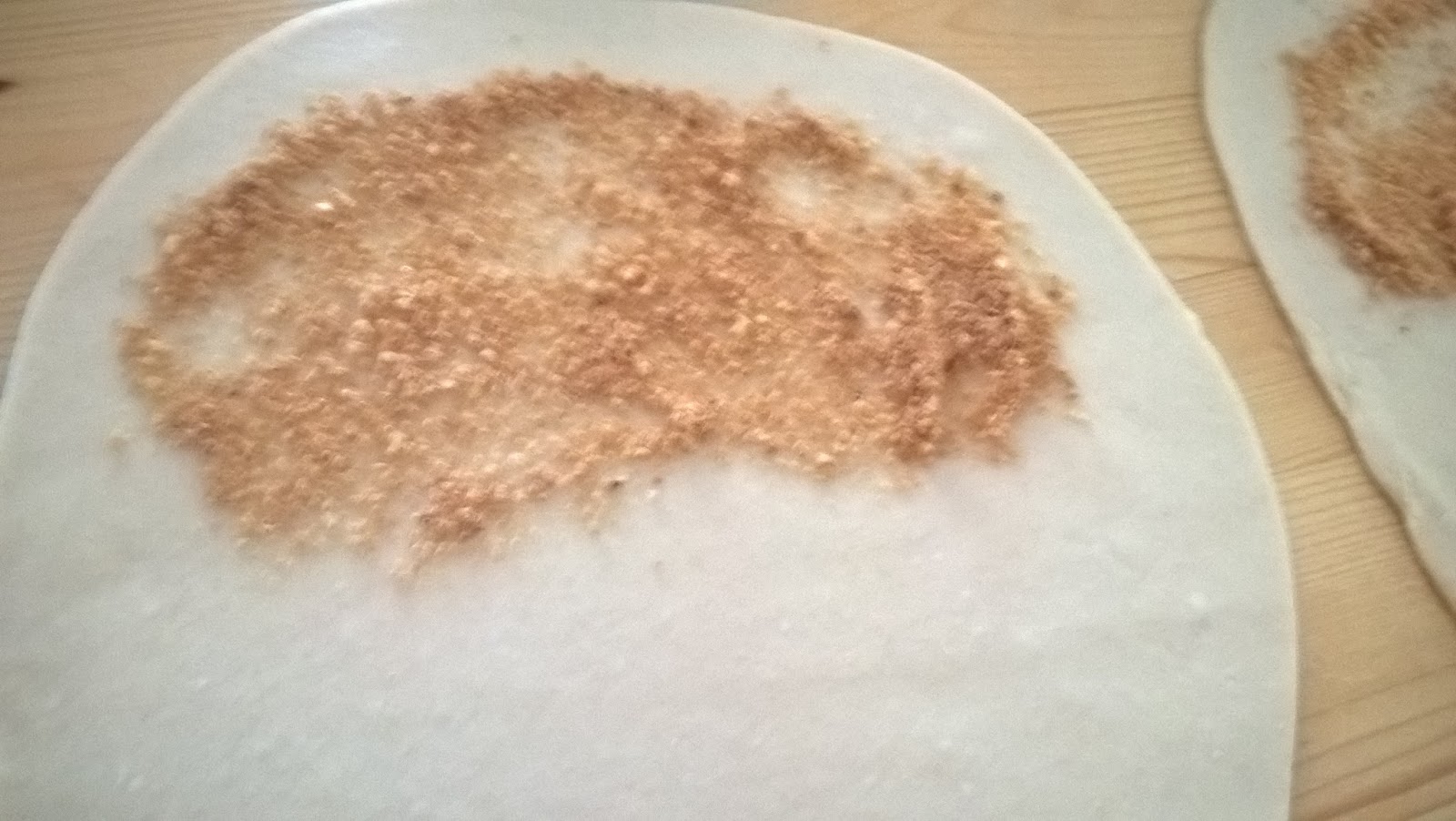 Mettete un velo di pangrattato su metà del cerchio.