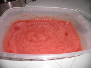 Unite lo sciroppo alla purea di fragole e mettete in freezer fino a quando si sarà solidificata. Potete rimescolare ogni mezz'ora oppure frullare in un mixer dopo che si è solidificata, vedrete che rimarrà cremosa anche se la rimettete nel congelatore.