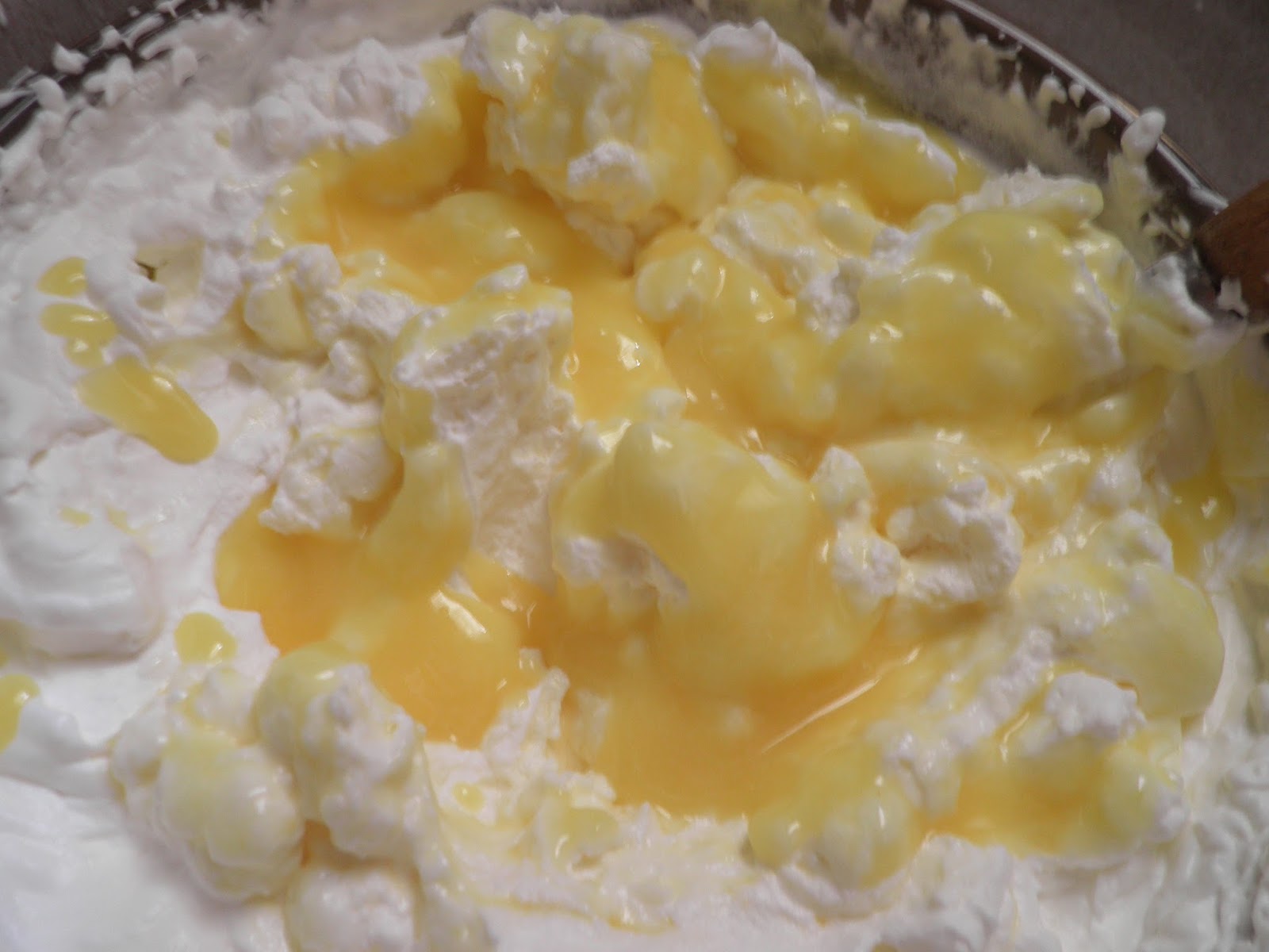 Montiamo 400 g di panna ed incorporiamola alla crema mescolando delicatamente.