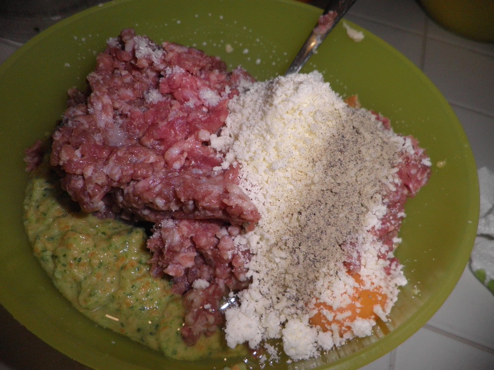 Unite 400 g di carne di vitello tritata, un uovo, 80 g di parmigiano grattugiato, due cucchiai di pangrattato.