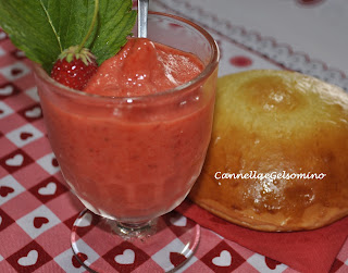 La frutta deve essere naturalmente freschissima e non trattata. Ecco le dosi della mia cremolata di fragole: 450 g di fragole frullate, 250 g di acqua, 300 g di zucchero, 50 g di glucosio (che potete sostituire con del miele d'acacia), 1 limone.